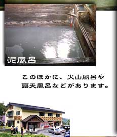 「泥風呂」は地底数千mより湧く泥を使っているため、全身を湿布で温めている効果があるとか。「泥を持ち帰らないでください」との貼紙が効果のほどを表しているのでしょう。